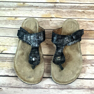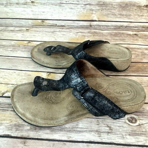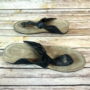 Taos Womens Black Metallic Leather Cork Platform Lucy Thong Sandals 8-8.5