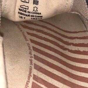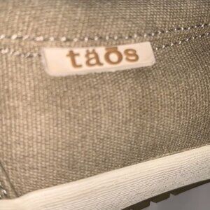 These Taos slip-on shoes offer a stylish blend of comfort and versatility. The canvas material provides breathability, making them ideal for daily wear. Their minimalist design, paired with a neutral beige color, allows easy pairing with various outfits. The shoes are designed for women's size 7 and made with quality craftsmanship.