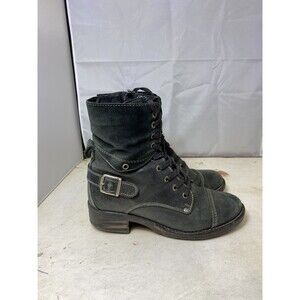 Taos Womens Crave Boot Size 5 Black Leather Moto Lace Up Combat Bootie Lug Sole