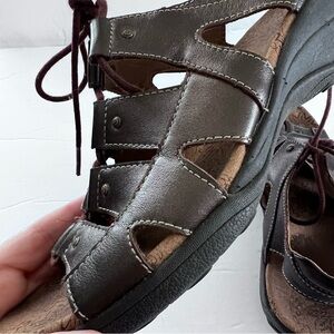 Taos Women’s Leather Lace Sandal Dark Brown size 9