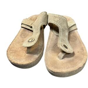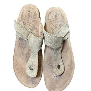 Taos Women's Lucy Thong Wedge Sandals Size 7-7.5 Brown Flower Embossed Suede