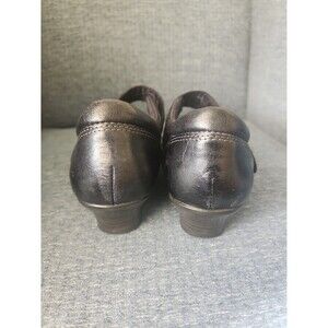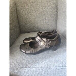 Black leather heeled Mary Jane shoes (heels are about 1.5" high).