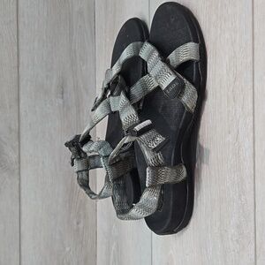Step out in style with Teva women's sandals, featuring a sleek black and gray design. Perfect for casual outings and comfortable wear.