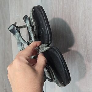 Step out in style with Teva women's sandals, featuring a sleek black and gray design. Perfect for casual outings and comfortable wear.