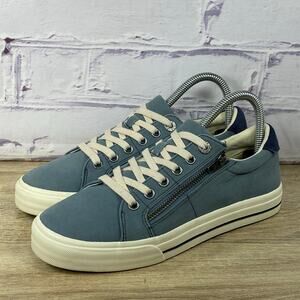 Taos Z-Soul Blue Canvas Sneakers Women's 7 Wide Side Zip Casual Lace Up Shoes