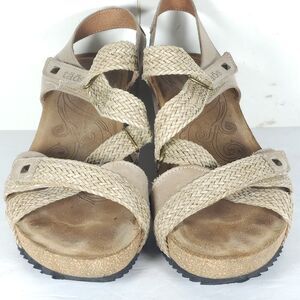 Taos Women’s Julia US9-9,5 Beige Leather Woven Cork Wedge Strappy Sandals