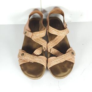 Taos Women’s Trulie US9-9,5 Cantaloupe Leather Woven Cork Wedge Strappy Sandals