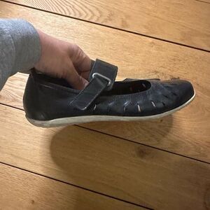 Taos black leather loafers, Velcro closure. Mary Jane style