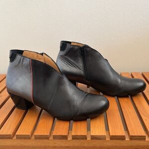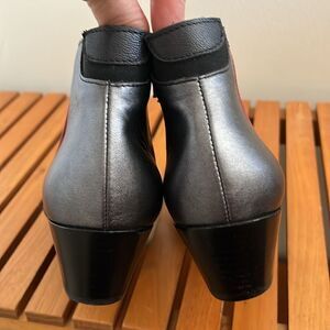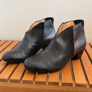Tape Artisan booties color block silver black and red size 39 / 8 fits small. I am an 8 (sometimes 8.5) and these are too small. I’d say they fit closer to a 7.5. Genuine leather with color block black and pewter silver with red stripe. Cute ankle style boot. Gently worn but unfortunately too small for me. Made in Portugal.