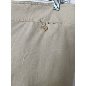 These Tapemeasure Anthropologie pants are a versatile addition to any wardrobe. With a flattering bootcut leg style in an off white linen blend fabric, they are perfect for dressing up or down. The flat front and back pockets with button accents add a classic touch, while the zip closure provides a secure fit.