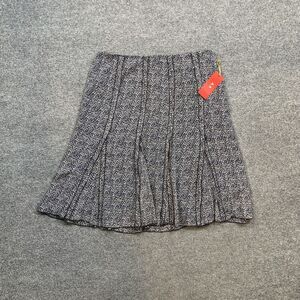 Tapemeasure Skirt Women 10 Navy Grey Elastic Waist Patterned Pleated Swing Lined