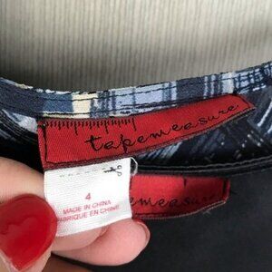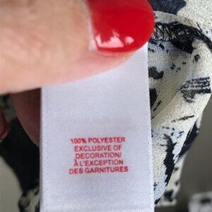 Tapemeasure Womens Abstract Print Ruffle Sleeveless Blouse Size 4 Black/White/Bl