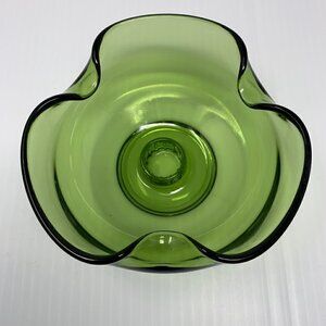 Taper Candle Holder Green Pinched Art Glass Vintage Mid Century Modern
