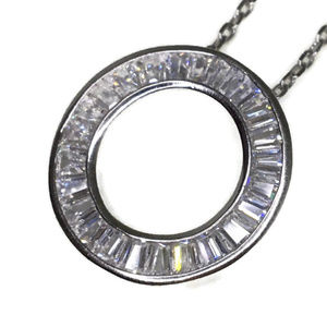 Tapered Baguette Cubic Zirconia Circle pendant white gold on silver and chain