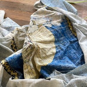 Amazing tapestry fabric. Unsure of the origin or the depiction. Looks mystical ☺️ Maybe someone could enlighten me if you know!