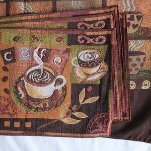 Tapestry Cafe/Coffee Cup Table Runner And 4 Placemats Lined