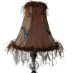 Tapestry Lamp Shade Corn Silk Fringe 9" Light Clip Bell Shaped Victorian Witchy.