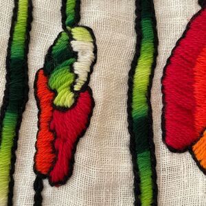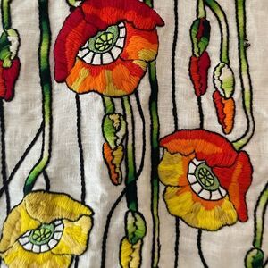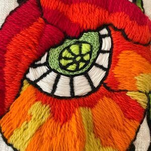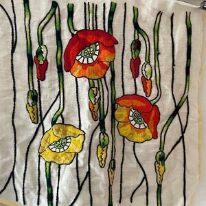 Bought at an estate sale about 10 years ago. I had plans for this but here it sits. Was going to frame it. Still has tape on the outer edge. Looks finished. There is a faint stain that I’ve never tried to clean. Doesn’t look permanent?! I’m not sure what to do with it? A little table cloth or finally find a frame for it? It’s old. No weird smells! Beautiful colors! 1970’s vibe. 26x26