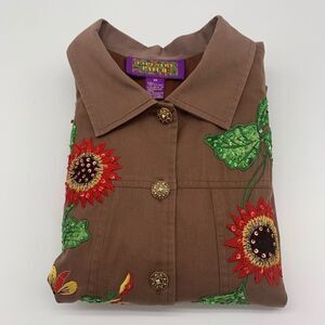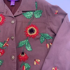 Tapestry Patch Red Flower & Bees Light Jacket Size M