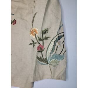 The Tapestry Patch Women’s XXL Tan Floral Vintage Jacket Blazer is a stylish and versatile outerwear piece perfect for various occasions such as travel, parties, casual outings, workwear, and business meetings. Made from a blend of cotton, rayon, and linen, this lightweight jacket features a beautiful floral pattern, embroidered accents, and shoulder pads for a bohemian chic look. The vintage design, collared neckline, and button closure add a touch of retro charm to the piece, making it a standout addition to any wardrobe. Perfect for a seasons, this jacket is a must-have for women who appreciate unique and colorful styles with a 90s bohemian flair.