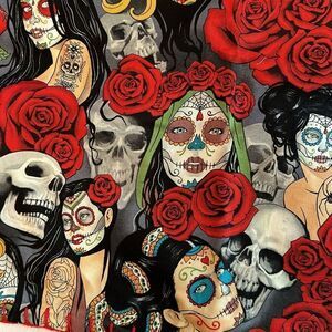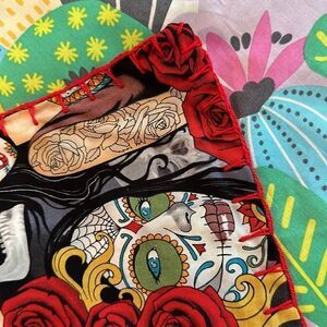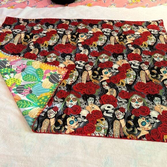 Hand crafted using a cotton sugar skull fabric and backing it with a cotton cactus fabric