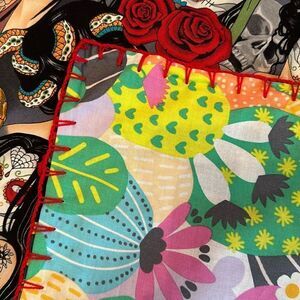 Hand Embellished Tapestry Small Blanket Sugar Skulls Cactus Hand Crocheted