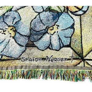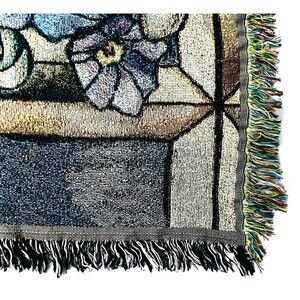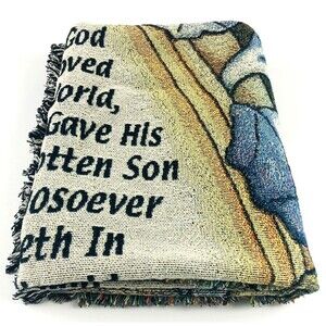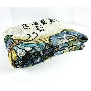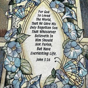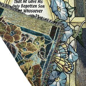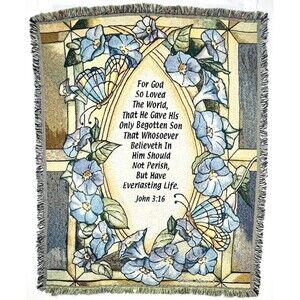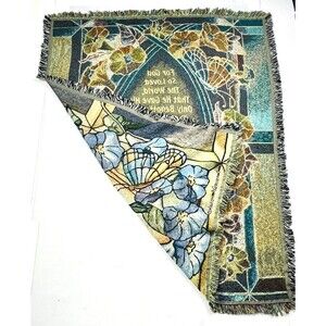 Tapestry Blanket w/ fringe John 3:16 Spiritual quote Blue Floral Calla Lillies