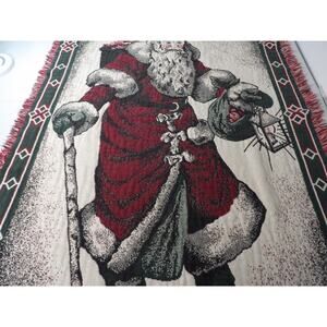 Tapestry Throw Blanket Christmas Santa Claus Red Green Holiday