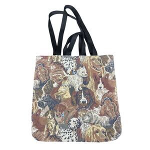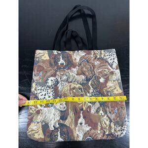 Tapestry- Tote Bag- Assorted Dog Patterned Fabric- 16x15" bag size- brown black