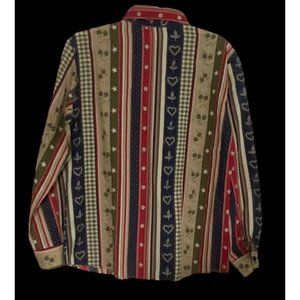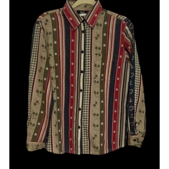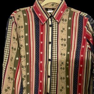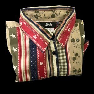 Tapestry Woman’s USA Patriotic Print Button Up Shirt Size Small Multi Color