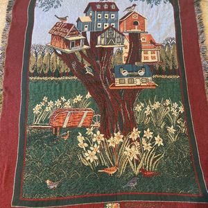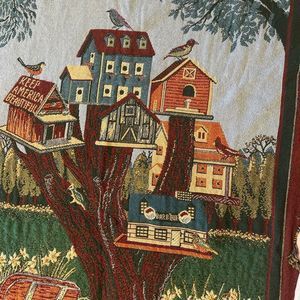 Tapestry Woven Americana Birdhouses Blanket very colorful