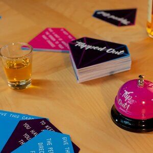 Turn the party up with Tapped Out, a new twist on Truth or Dare! This game features diamond-shaped question cards, a "Tapped Out" bell, and a shot glass. Don't want to answer a question? Then you've tapped out. Take a drink. Factory Sealed (This is an adult game)