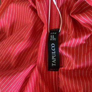 Tapulco Stripe Red Men’s Mandarin Collar Short Sleeve Size L