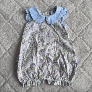 Tara Classics | Boutique Blue and White Cottontail Bunny Romper | Size 12 Months