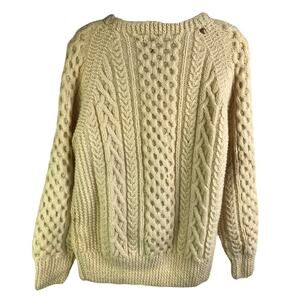 Tara Fashions Sweater Womens M Vintage Cream Wool Cable Knit Fisherman Crew Neck