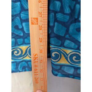Tara Grinna Blouse Blue Shirt Geometric Short Sleeve Button Hawaii Women's Large