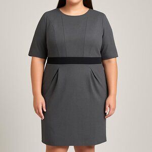 Tara Jarmon Grey Short Sleeve Pleated Sheath Knee Length Dress