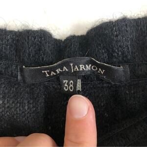 Tara Jarmon Kemi Black Knit Mohair Ruffle Neck Straps Peplum Tank Blouse Top