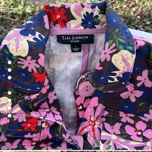 Discover the elegance of the Tara Jarmon Pink Blazer, featuring a lively floral pattern that adds a touch of spring to your wardrobe. This blazer combines the sophistication of a suit jacket with a playful design, making it a standout piece for any occasion. Crafted from a textured fabric, it offers both style and comfort.
