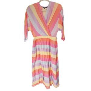 Tara Jarmon Rainbow Stripe Midi Dress Small Dopamine Dressing Parisian Pastel