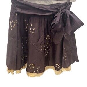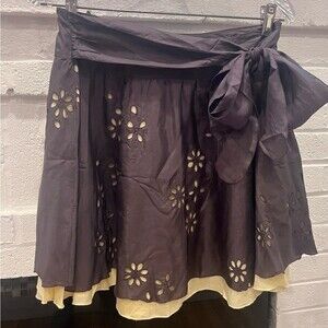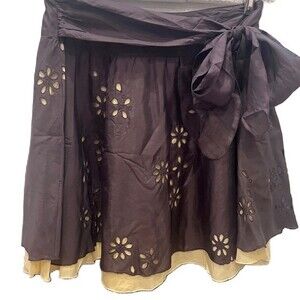 Tara Jarmon Skirt Size S Silk blend Floral Cutouts Lined skirt with tie back