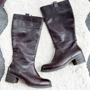 Tara M all Brown Leather DIDI Faux Fur Interior Block Heel Rounded Toe Boots Sz 9