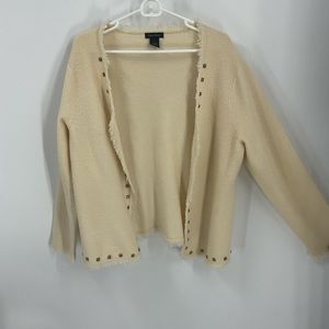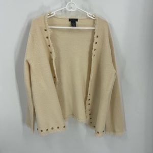 Tara Ryan, 100% wool open front fringe, Cardigan, L