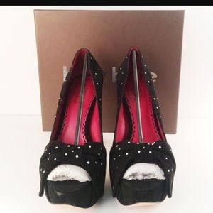 Tara Subkoff for Bebe pumps. NWT. IN BOX and Plastic. These are the MOST GORGEOUS shoes I've ever seen, which is why I bought them. I don't know what I was thinking because they are a bit too small for me. It makes me sad that I can't wear them because they are so beautiful and have an amazing sparkle to them. The only reason the bottoms have small markings is from when I tried them on inside the store.