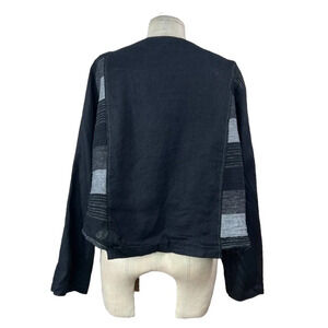 Tara Vao Collarless Button Top in Black Gray Stripe Lagenlook Size XL