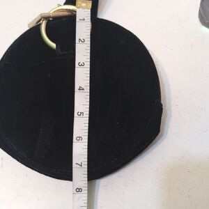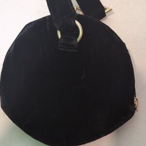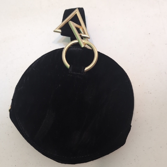 Tara Zedah Elegant black velvet round bracelet bag with a unique gold accent. Perfect for evening outings. 8X8". In good pre-owned condition. This has the name of the designer inside but I was unable to get a picture of it due to the angle.