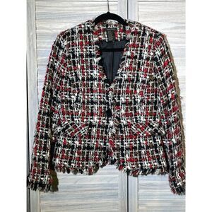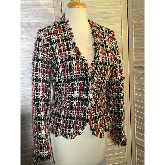 Gorgeous tweed style blazer from Tara Ryan. Size 8. Retro style. Fringe hem.