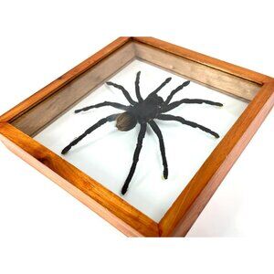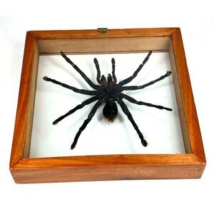 Most similar taxidermied tarantulas are mounted on paper or paperboard, which means they can only be viewed from the top side. We feel that being able to see both sides makes this one very cool.