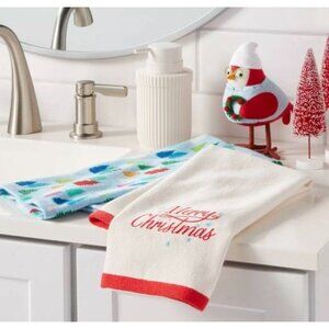 Target 2 Pack 'Merry Christmas' Hand Towels Cream Blue Wondershop™. B31
