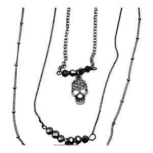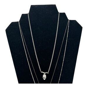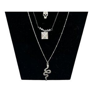 Target 3pc Layered Necklace Set With Skull Snake & Square Charms Silver Tone